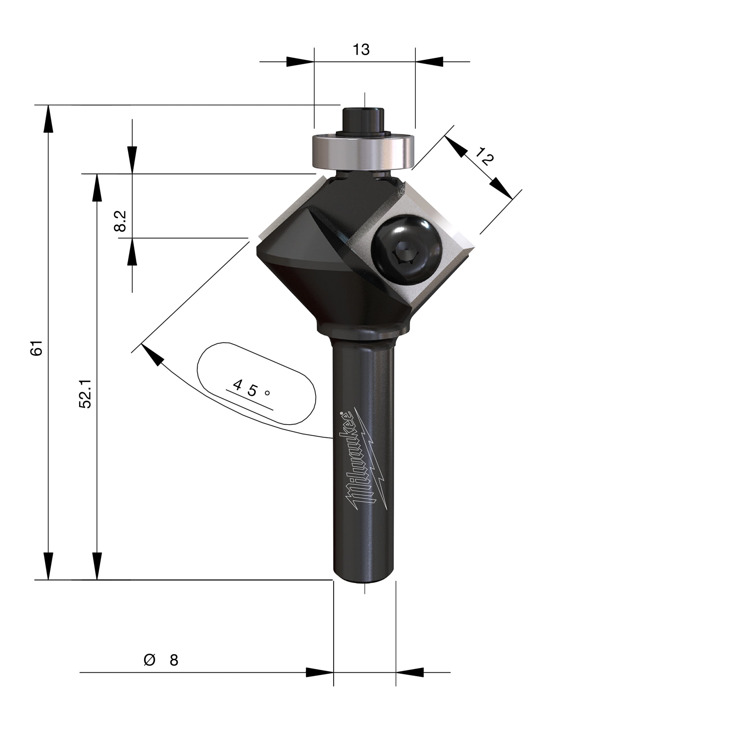 • Fraise à chanfreiner avec deux plaquettes carbure remplaçables avec roulement inférieur pour un guidage automatique, sans besoin de gabarit.