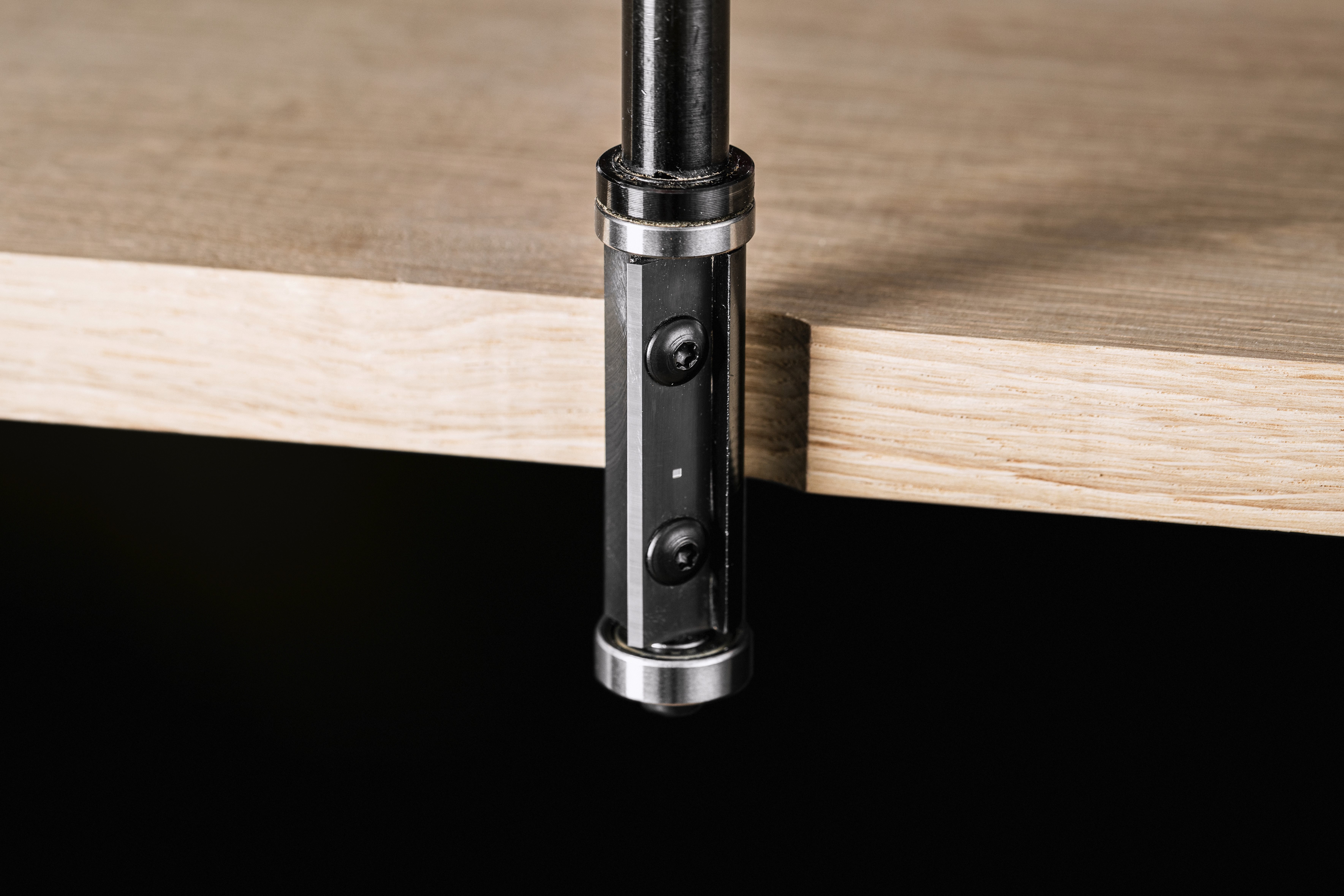 • Le double roulement offre la flexibilité de placer les gabarits soit sur le dessus, soit sur le dessous du matériau. Il apporte également plus de stabilité lorsque des enlèvements de matière importants sont nécessaires.